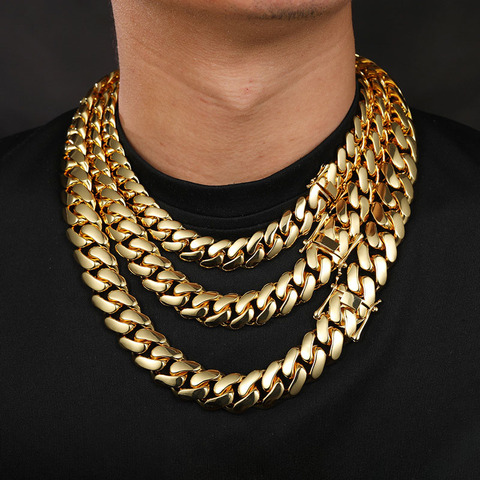 Ganku, venta al por mayor, conjunto de cadena cubana grande lisa, 10/12/14/16/18/20/22mm de ancho, cobre galvanizado, oro, mariposa, fiestas con botones